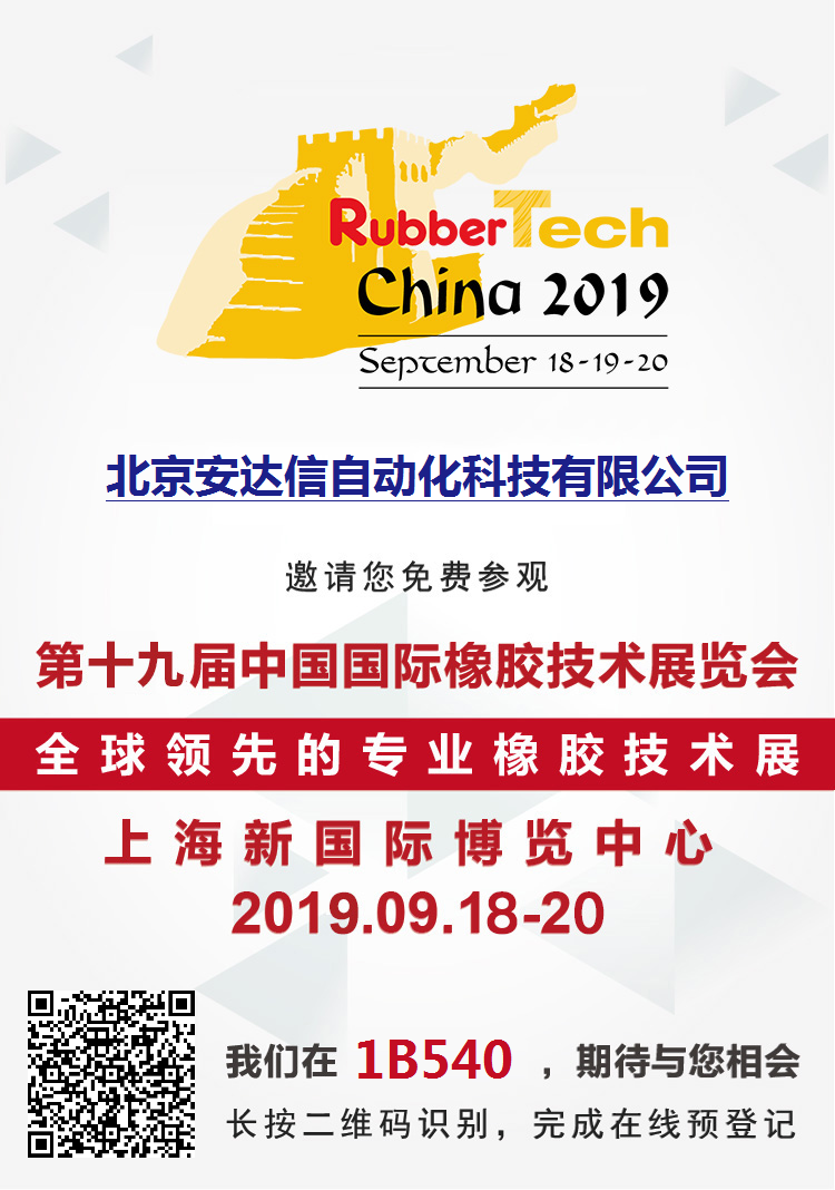 2019年9月18~20日,安達(dá)信的銷售團(tuán)隊(duì)將齊聚上海,參加在上海舉辦的第十九屆中國國際橡膠技術(shù)展覽會,我公司展位在一號館1B540。我們誠邀您蒞臨展會現(xiàn)場,共享行業(yè)盛會。